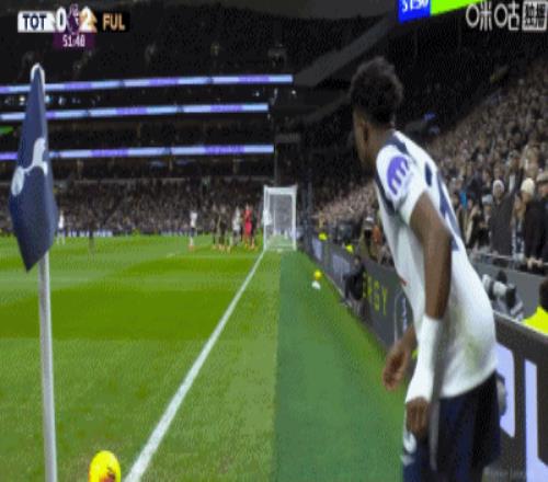 第59分钟,库杜斯禁区右路得球爆射破门,热刺1-2富勒姆