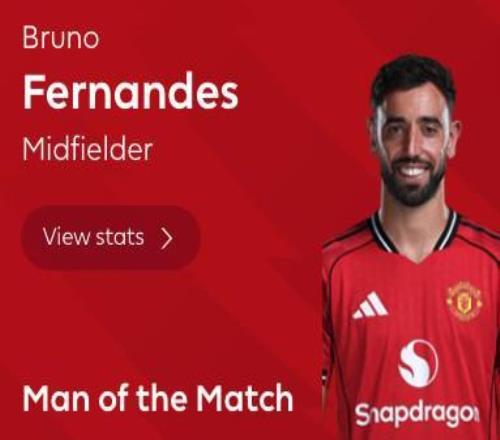 最终经过英超官网球迷评选,布鲁诺-费尔南德斯以51%的得票率当选全场最佳球员。