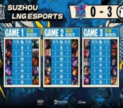 本场比赛苏州LNG电子竞技俱乐部0:3负于iG。